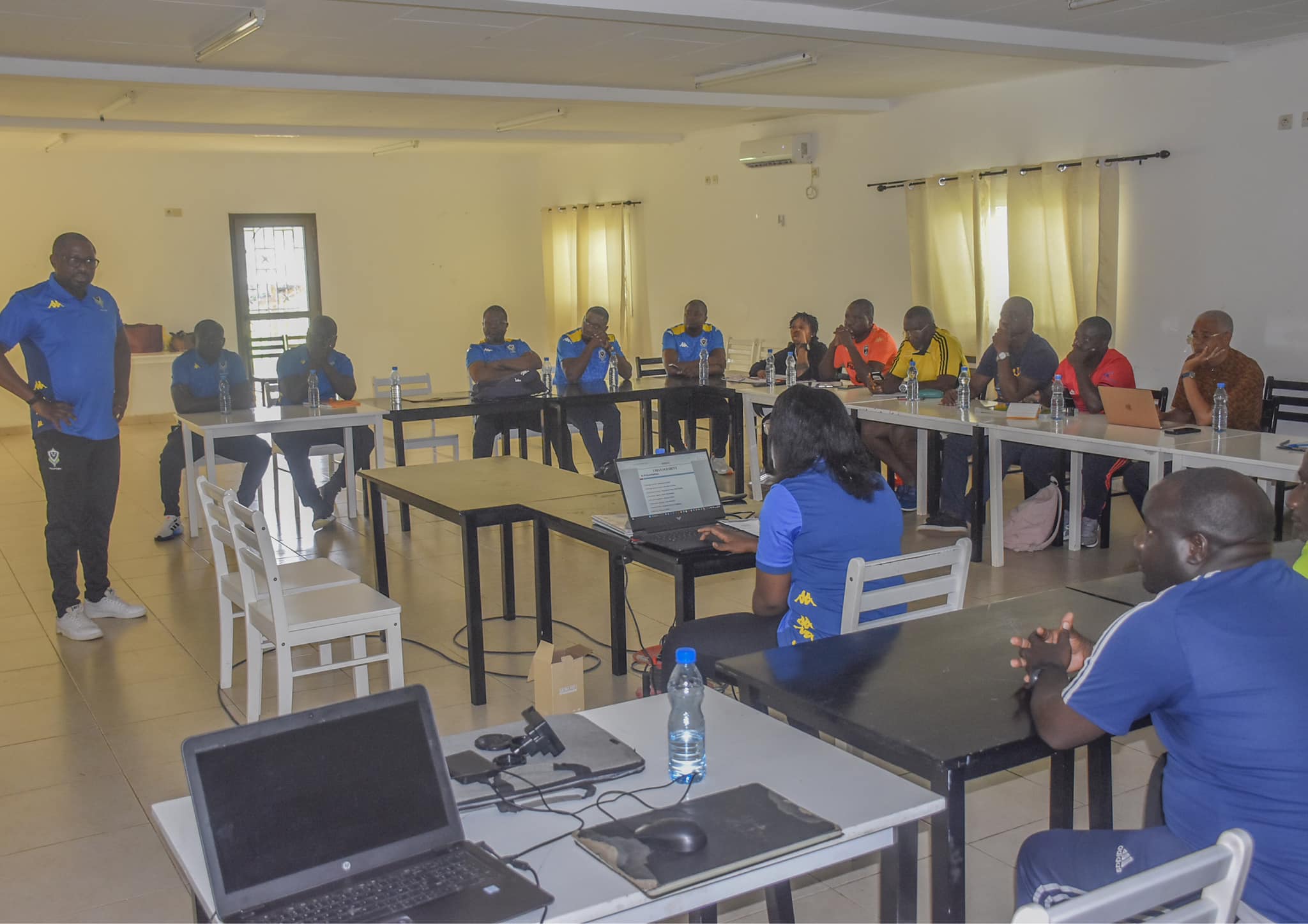 C’est à l’initiative du Sélectionneur National et de son Staff technique que s’est tenue ce samedi 16 décembre 2023, la première journée d’échanges et partage d’expériences avec les entraîneurs des clubs masculins et féminins du national foot 1, 2 et 3 au Centre Technique de Bikélé.