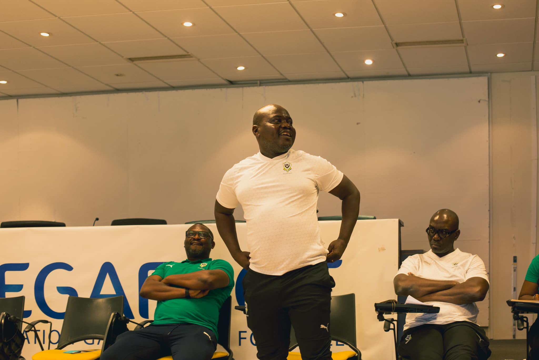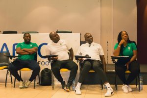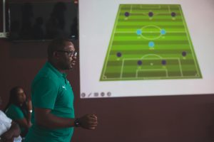 Cette journée de partage s’est déroulée en deux phases. L’une théorique sur les méthodes d’entraînement et les principes de jeu. Un premier thème richement animé par le Sélectionneur national Thierry Mouyouma et son adjoint Cédric Moumbamba.