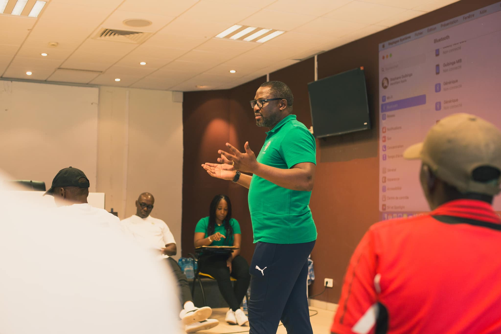 Dans la seconde phase, celle-là, pratique, il s’est agit de la préparation athlétique des joueurs. Un thème animé par Stéphane Guibinga, entant que préparateur physique et analyste vidéo.
