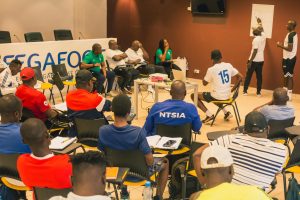 Autre enseignement théorique présenté par le Médecin des Panthères, Francois André Diouf, a porté sur plusieurs points à savoir : le rôle de l’équipe médicale, les différents modes de prise en charge, l’alimentation du joueur et la prévention avec des recommandations par rapport aux réalités des entraîneurs locaux.